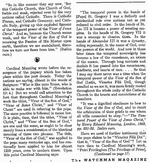 The reason the Bible speaks so negatively about 666 is that it symbolizes the power of the person who has this number to have power over all the other gods, which in the case of the Papacy is their claim to be God and to have authority over God and his law, which are false claims. Because the Popes claim both to be God and to have authority over God, they believe that they can change the law of God to suit their own purposes. This is extremely serious to God and He knows it will also lead many to be lost for all eternity. So the above evidence links 666 with ancient sun worshipping pagan Babylon and the Papacy of the Catholic Church, which is dominated by pagan practices and solar images and referred to as Babylon in the book of Revelation. This is just a small part of the evidence that makes this relationship apparent.