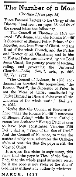 One should now understand the relevance of why God calls the Catholic Church Babylon, and while 666 the number of the beast is not directly satanic, it is indirectly very satanic as it comes out of Babylonian pagan worship. As a result, the Catholic Church has symbolically become Babylon and why we find that the head of this power has the number 666. It was also known a long time ago that various Papal titles such as “Vicarius Filii Dei” which means Vicar of Christ or substitute for Christ, being synonymous with Antichrist, i.e., assuming the power of God on earth, does count or add up to 666 in Roman numerals and Latin etc. All the parallels are amazing such as the numbers on the amulet count to 666 and in the same way the Bible says to count the number of the beast, which also comes to 666. See an excerpt of an article on the known titles of the Pope called “The number of a man